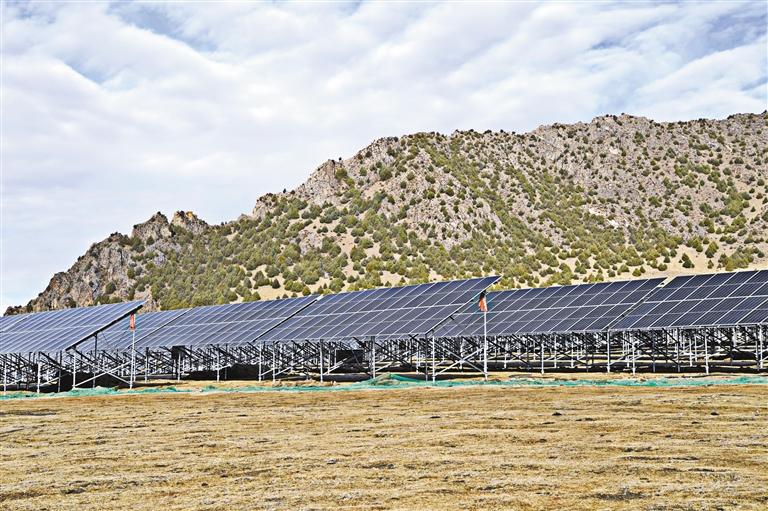 圖為那曲市索縣熱瓦鄉(xiāng)熱熱村50WM光伏儲能建設項目。記者 王敏 攝