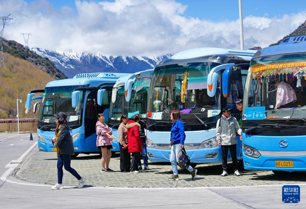 游客在拉(薩)林(芝)高等級(jí)公路工布江達(dá)縣服務(wù)區(qū)下車(chē)小憩(4月19日攝)。新華社記者 張汝鋒 攝