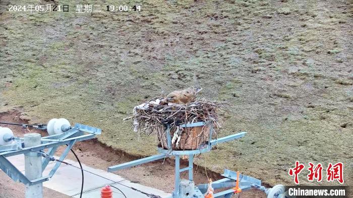 圖為監(jiān)控畫(huà)面顯示:5月21日,在青海玉樹(shù)藏族自治州嘉塘草原,10千伏珍一路的67桿塔上,一只大鵟正在孵化幼鳥(niǎo)。國(guó)網(wǎng)青海省電力公司供圖