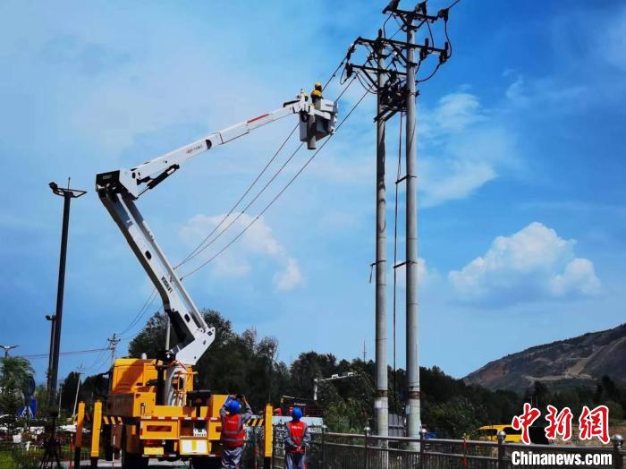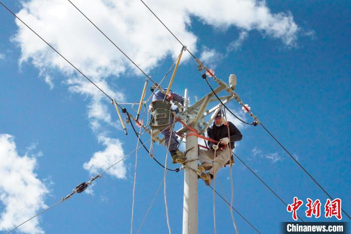 圖為電力人員正在架設(shè)鳥(niǎo)巢。國(guó)網(wǎng)青海省電力公司供圖
