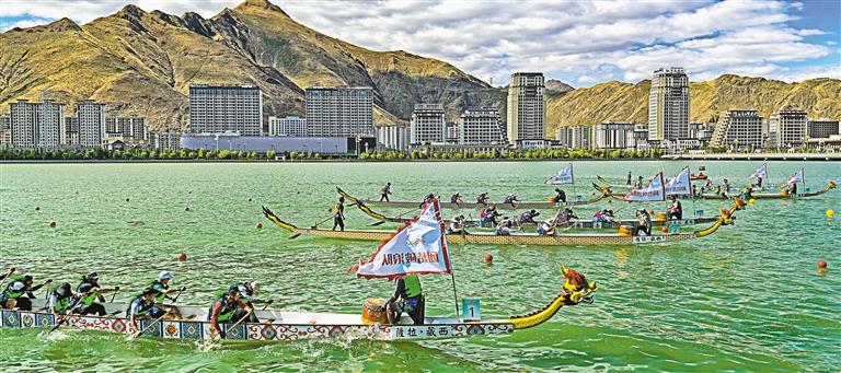 鑼鼓喧天歌盛世,龍舟競渡展雄風(fēng)。6月9日,隨著裁判一聲令下,2024年西藏自治區(qū)端午節(jié)牛皮船(龍舟)賽在拉薩市金珠東路濱河公園水域開劃。這是在西藏舉辦的首個城市龍舟賽,也是中國海拔最高的龍舟賽。