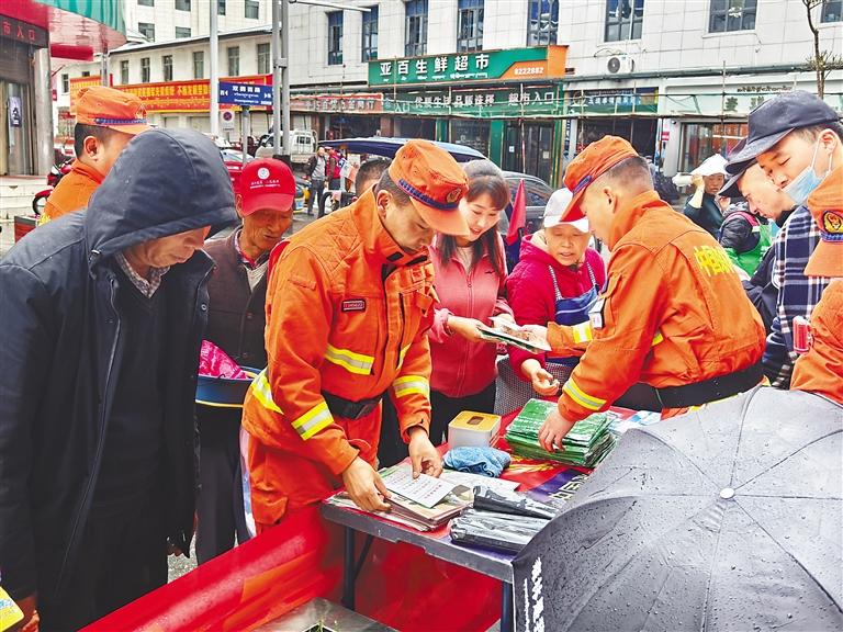 消防員發(fā)放防災(zāi)減災(zāi)知識(shí)手冊(cè)。記者 王雨霏 攝