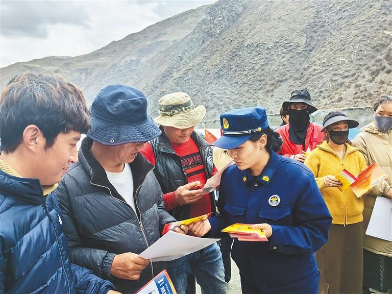圖為宣傳員在蟲草采挖點(diǎn)向農(nóng)牧民群眾科普消防安全知識(shí)。肖暄 攝