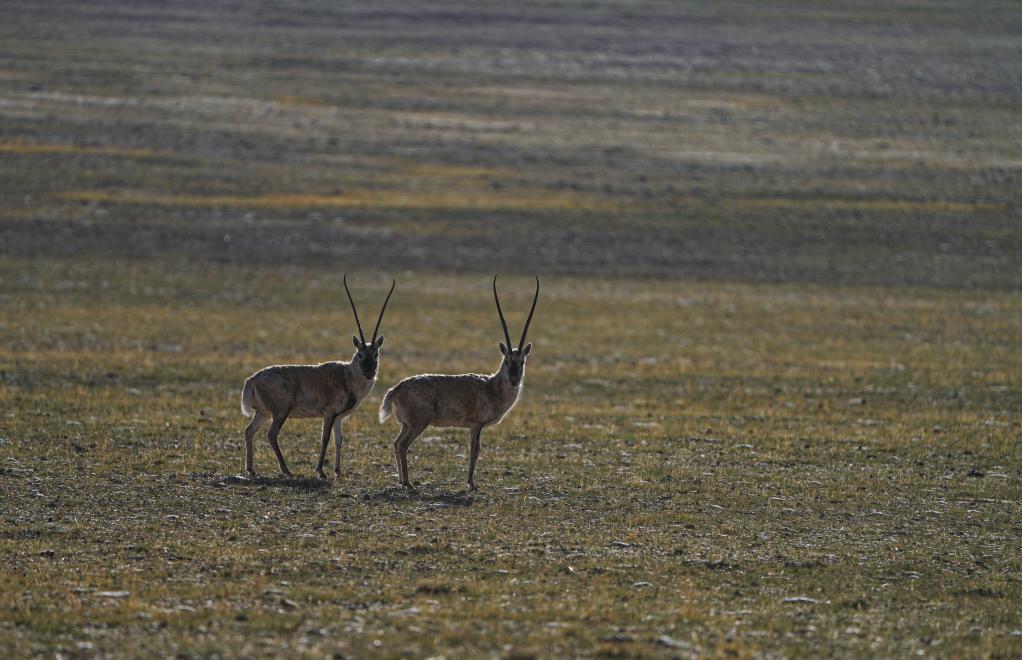 幾只公藏羚羊守護(hù)母藏羚羊遷徙之路(5月8日攝)。
