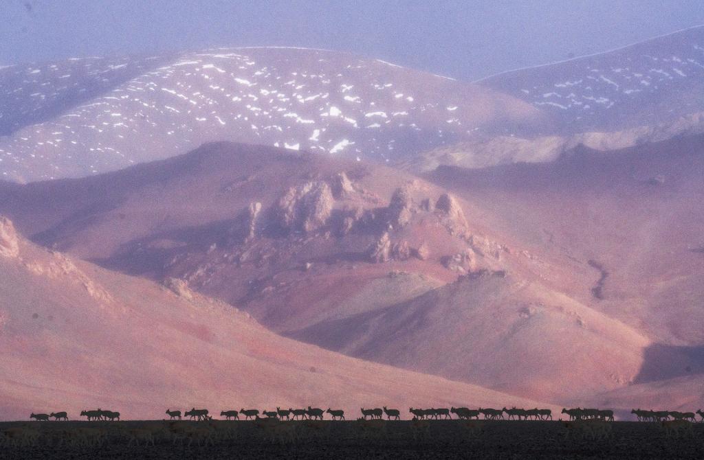 6月15日清晨在羌塘國家級自然保護(hù)區(qū)拍攝的遷徙中的母藏羚羊。