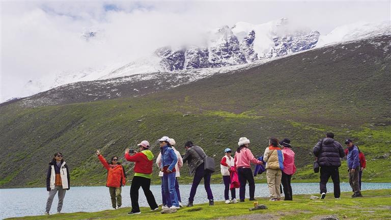“眼前的景色如此浩瀚,無論我們?nèi)绾闻?,都無法將其完全收入眼底;手中的相機(jī)快門不停地按下,卻總感覺無法捕捉到每一處細(xì)節(jié)的美麗;社交媒體上的照片和視頻,雖然已經(jīng)分享了無數(shù),但總覺得還有更多美好未能展現(xiàn)。言語在這一刻顯得如此蒼白無力,無法完全傳達(dá)我們面對(duì)美景時(shí)的激動(dòng)心情?!边@是河南游客張曉明和劉芳夫婦對(duì)薩普雪山的贊美。置身于這絕美的畫卷中,一聲聲驚嘆,是他們對(duì)大自然鬼斧神工的贊美,也是他們內(nèi)心震撼的真實(shí)寫照。
