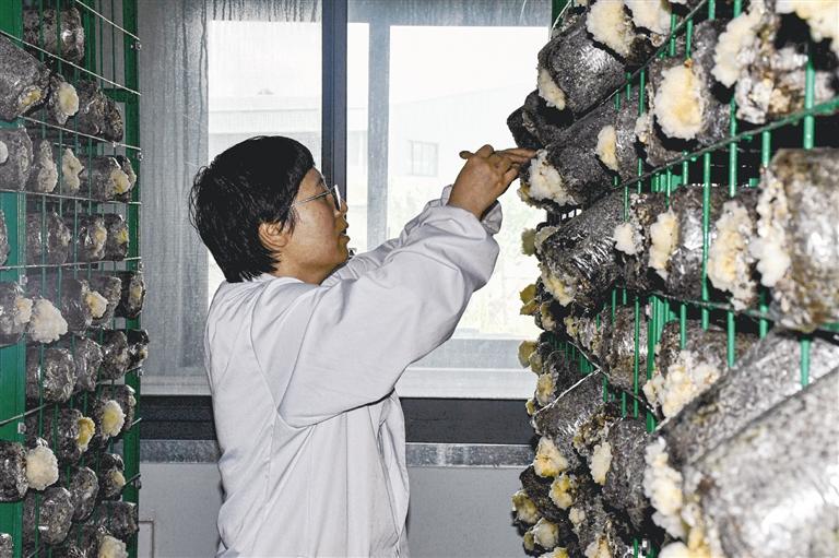 張君麗在培育銀耳。記者 桑旦歐珠 攝