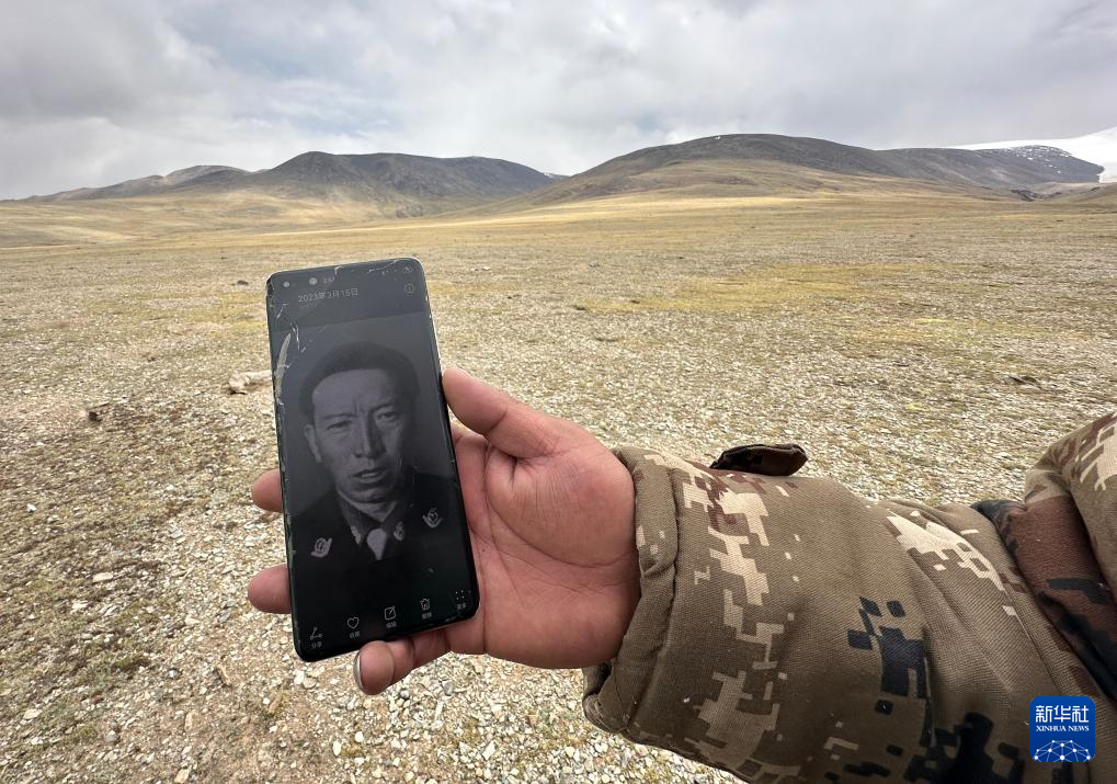 6月15日,格桑倫珠向記者展示他手機(jī)中珍藏的羅布玉杰的照片。新華社記者 費(fèi)茂華 攝