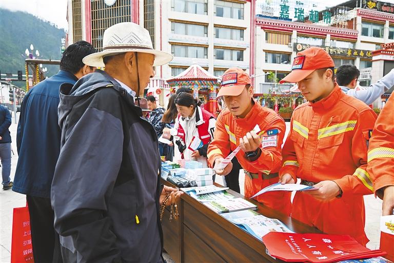 活動(dòng)現(xiàn)場,波密縣森林消防中隊(duì)消防員通過發(fā)放防災(zāi)減災(zāi)宣傳資料、講解安全生產(chǎn)常識(shí)的形式,向過往群眾宣傳普及森林火災(zāi)、洪澇、山體滑坡、地震等自然災(zāi)害以及逃生自救、互救知識(shí)和技能。