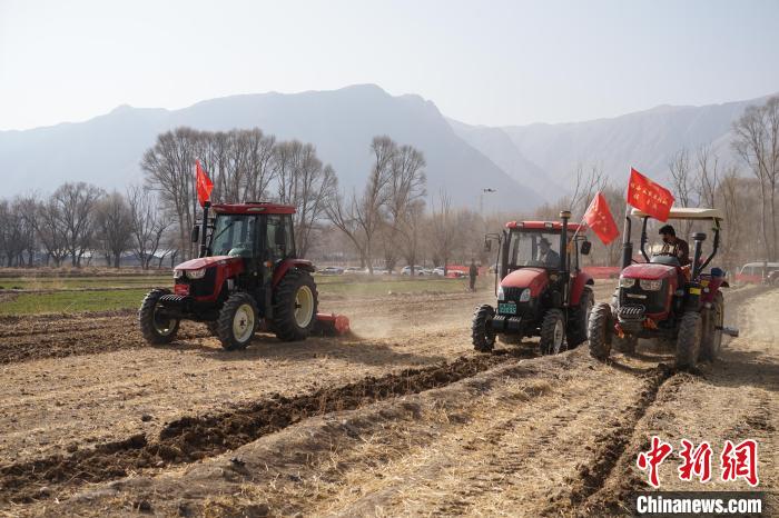 圖為青海省海南藏族自治州貴德縣拉西瓦鎮(zhèn)藏族村民正在進(jìn)行機械耕作。馬銘言 攝