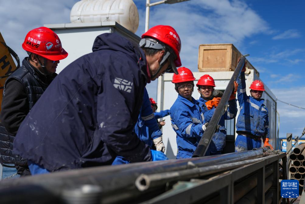 在海拔超過(guò)4700米的西藏納木錯(cuò),湖泊巖芯鉆探工作正在開(kāi)展中。