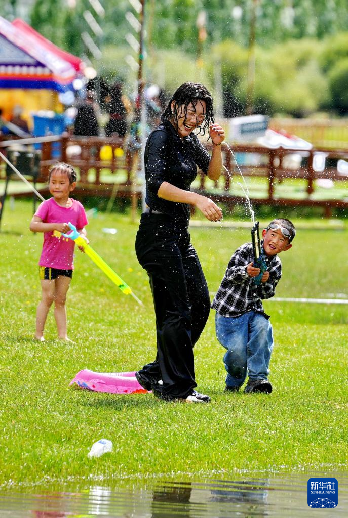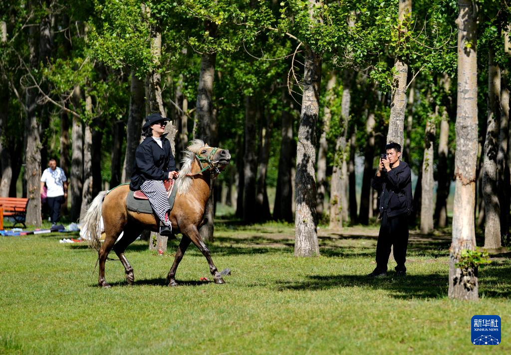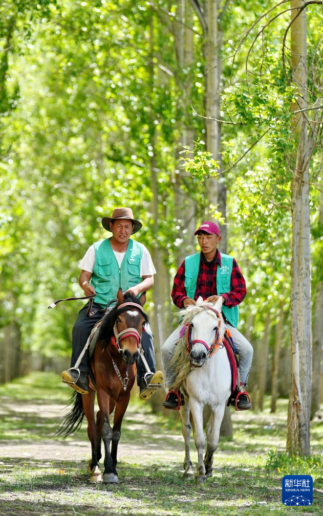 7月14日,當(dāng)杰村村民在“神秘樹林”藏嘎騎馬樂園里休閑。新華社記者 張汝鋒 攝