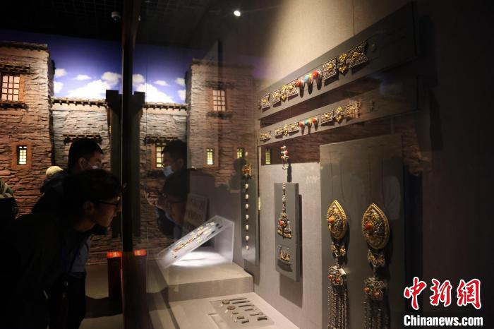 7月24日,參加“中國式現(xiàn)代化的萬千氣象·網(wǎng)絡名人青海行”活動的網(wǎng)絡名人,抵達江河源頭青海玉樹藏族自治州,在玉樹州博物館一覽自然與人文之美。玉樹州博物館是玉樹地震災后重建十大標志性建筑之一,分為序廳、自然展區(qū)、人文展區(qū)、臨時展廳。其通過實物標本等方式,展示了三江源和可可西里的野生動物、草地、森林,以及玉樹州的歷史、建筑、服飾、飲食等。圖為玉樹州博物館內的服飾文化展示。中新社記者 張?zhí)砀?攝