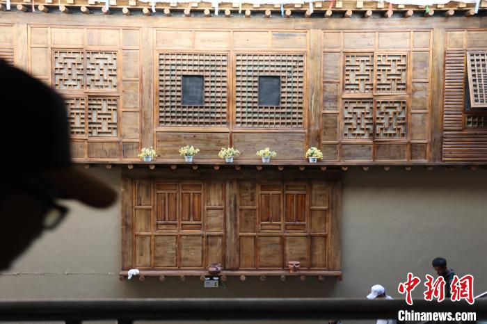 7月24日,參加“中國式現(xiàn)代化的萬千氣象·網(wǎng)絡名人青海行”活動的網(wǎng)絡名人,抵達江河源頭青海玉樹藏族自治州,在玉樹州博物館一覽自然與人文之美。玉樹州博物館是玉樹地震災后重建十大標志性建筑之一,分為序廳、自然展區(qū)、人文展區(qū)、臨時展廳。其通過實物標本等方式,展示了三江源和可可西里的野生動物、草地、森林,以及玉樹州的歷史、建筑、服飾、飲食等。圖為玉樹州博物館展示的建筑文化。中新社記者 張?zhí)砀?攝