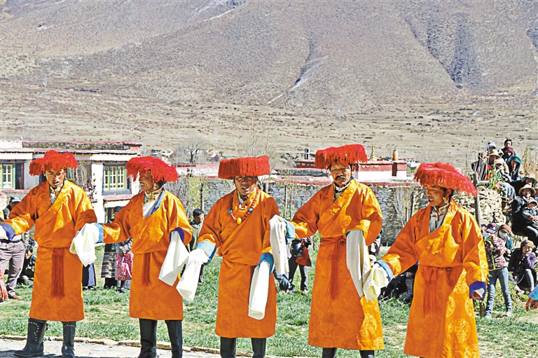 甲瑪鄉(xiāng)諧欽隊(duì)在非遺巡展活動(dòng)上表演諧欽。