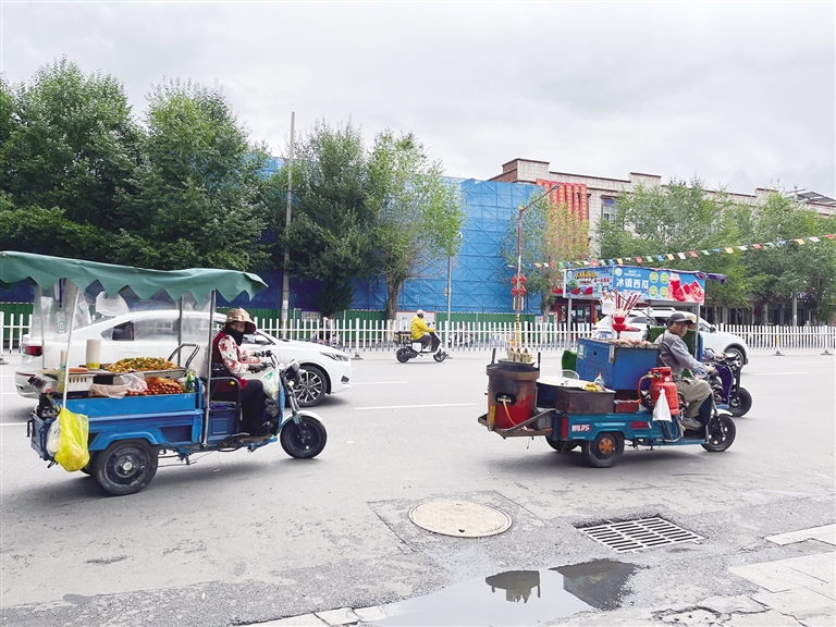 以往,布達(dá)拉宮西側(cè)沿街商鋪的“店外店”經(jīng)營現(xiàn)象十分普遍,街道顯得雜亂無章。經(jīng)過一系列整治,目前沿街商鋪均已實現(xiàn)了店內(nèi)經(jīng)營,整條街道變得干凈整潔,面貌煥然一新。在宗角祿康東門區(qū)域,以往流動商販聚集、占道經(jīng)營的現(xiàn)象也十分嚴(yán)重。這些商販不僅妨礙了交通,還存在隨意變道、逆行等危險行為,給過往行人帶來了極大的安全隱患。為了改善這一狀況,專項整治工作專班將流動商販治理作為重點內(nèi)容,通過加強巡查、安排城管執(zhí)法人員蹲點等方式,有效遏制了該區(qū)域的流動商販問題。如今,宗角祿康東門已難覓流動商販的身影。