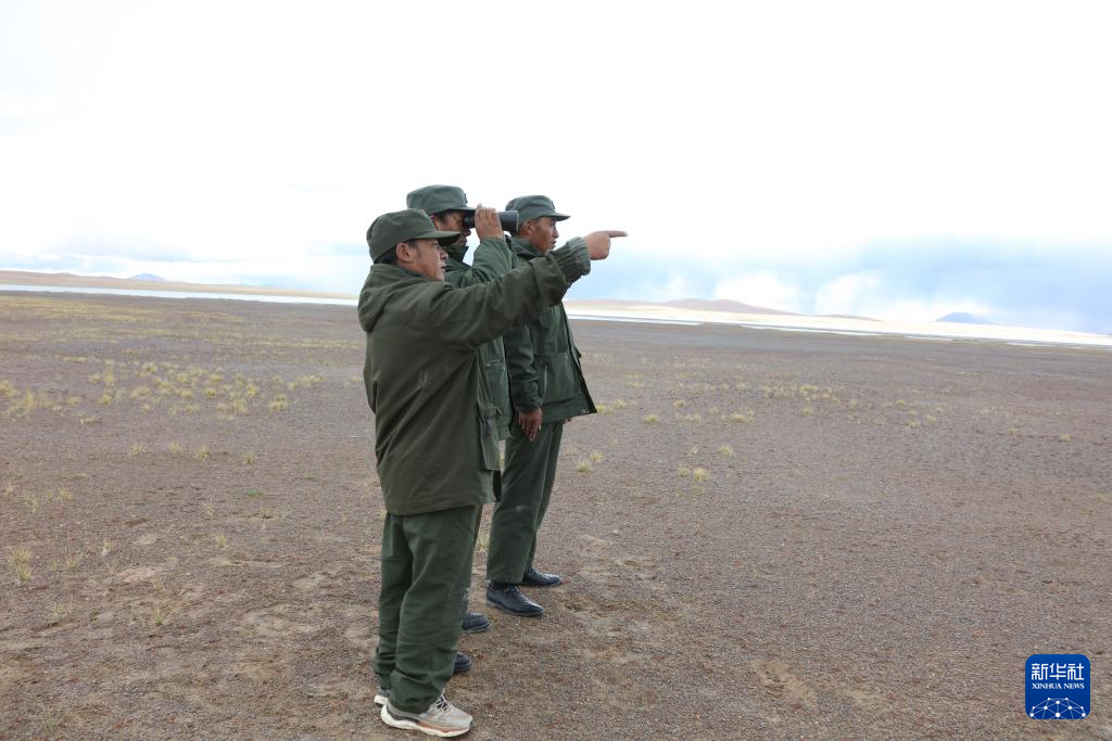 野生動(dòng)物專業(yè)管護(hù)隊(duì)員在令戈錯(cuò)旁巡護(hù)(9月8日攝)。新華社記者 劉詩平 攝