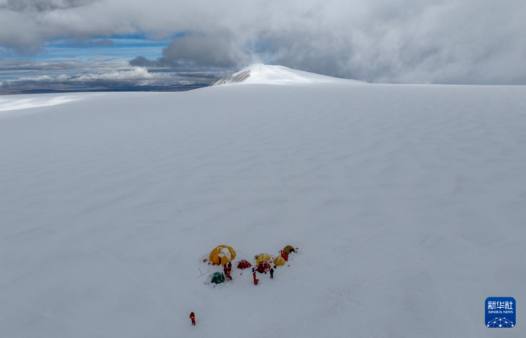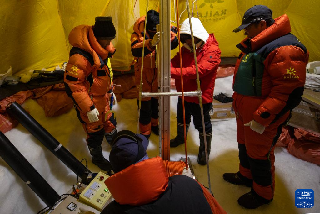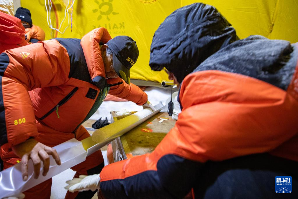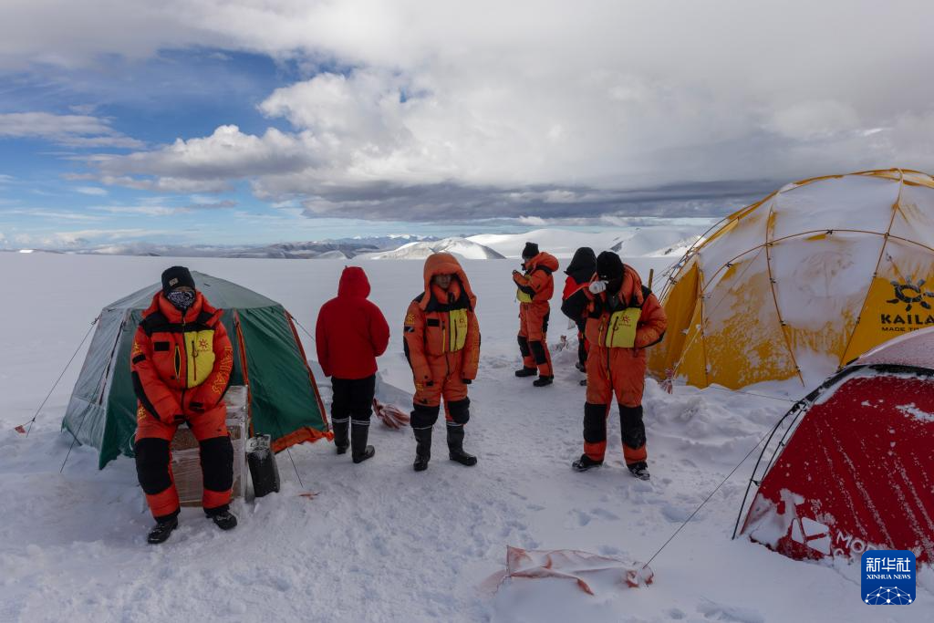 9月11日晚,由中國科學(xué)院青藏高原研究所副所長徐柏青研究員帶領(lǐng)的科考團隊在普若崗日冰原頂部海拔6100米的“Dome.C”點開機鉆取冰芯。