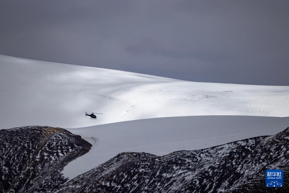 9月9日,直升機將科考物資從海拔5400米的第二次青藏科考普若崗日冰原大本營運往海拔6100米的“Dome.C”點。新華社記者 姜帆 攝