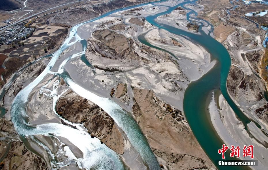 拉薩河藏語(yǔ)稱(chēng)為“吉曲”,意為“幸福河”,是雅魯藏布江的主要支流。深秋時(shí)節(jié),拉薩河水系猶如發(fā)辮,十分壯美。圖為11月3日拉薩河辮狀水系。(無(wú)人機(jī)照片)