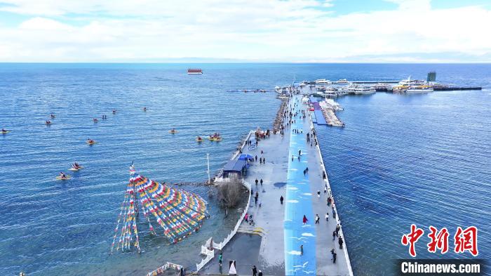 資料圖為2024年9月16日,青海省海南藏族自治州共和縣青海湖二郎劍景區(qū)內(nèi)游客眾多。(無(wú)人機(jī)照片)中新社記者 馬銘言 攝