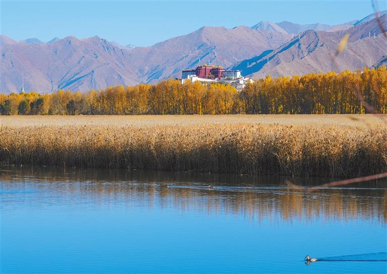 立冬時節(jié),被稱為“拉薩之肺”的拉薩市拉魯濕地國家級自然保護區(qū)景色依舊。草木盡染,水天相映,與遠(yuǎn)處的城市建筑共同構(gòu)成一幅美麗的生態(tài)畫卷。拉魯濕地是世界上海拔最高、面積最大的城市天然濕地,是拉薩市氧氣的主要補給源。