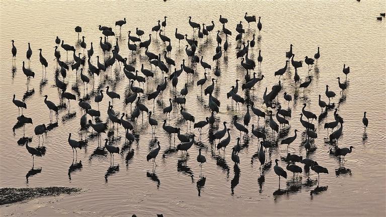黑頸鶴是全球15種鶴類中唯一在高原地區(qū)生活、繁殖的鶴類,屬國(guó)家一級(jí)保護(hù)動(dòng)物。每年10月中下旬,大批黑頸鶴從藏北高原飛到拉薩河谷,它們?cè)谵r(nóng)田、沼澤地里覓食嬉戲,享受冬日暖陽(yáng)。