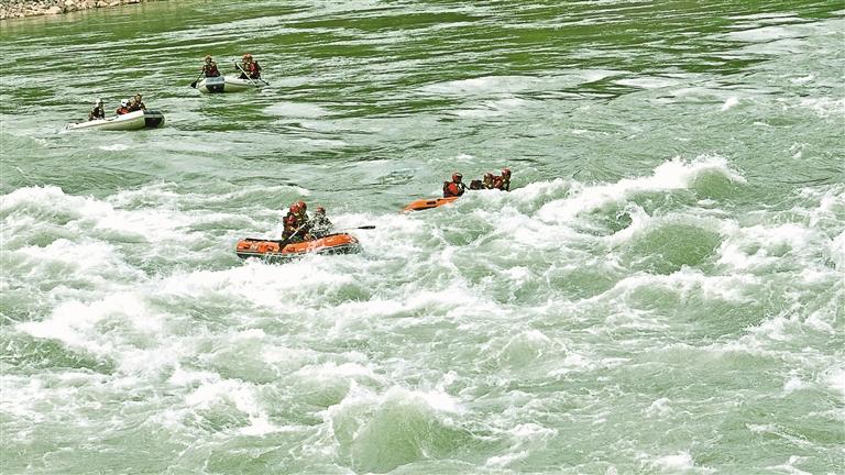 圖為結(jié)合駐地環(huán)境,指戰(zhàn)員開(kāi)展水域訓(xùn)練。記者 彭琦 攝
