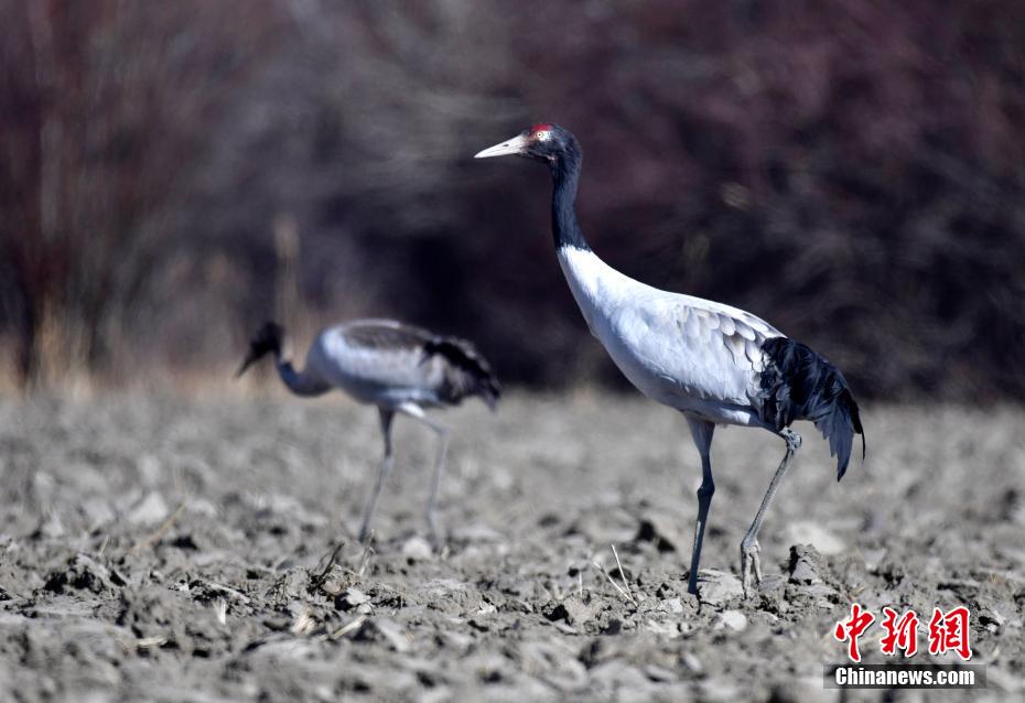 黑頸鶴是全球十五種鶴類中唯一在高原地區(qū)繁殖和越冬的鶴類,有著“高原精靈”之稱,屬中國(guó)國(guó)家一級(jí)保護(hù)動(dòng)物。位于雅魯藏布江與年楚河交匯處的西藏日喀則市桑珠孜區(qū)邊雄鄉(xiāng)有著廣袤的農(nóng)田和濕地,是黑頸鶴的主要越冬地之一。圖為11月20日,黑頸鶴在西藏日喀則市桑珠孜區(qū)邊雄鄉(xiāng)農(nóng)田內(nèi)覓食。