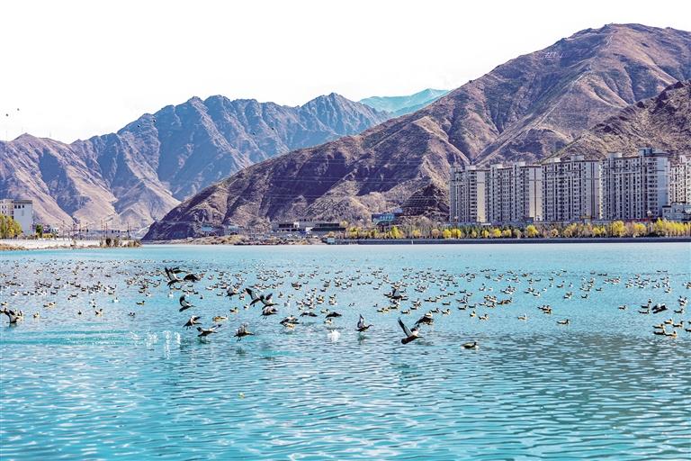 展翅飛翔的紅嘴鷗、在冬日暖陽下游泳的黃鴨、河中戲水的斑頭雁……自10月中旬開始,來自各地的越冬候鳥陸續(xù)抵達西藏,它們跨越千山萬水尋找宜居的棲息地,并在西藏各地的濕地湖泊“安家落戶”。