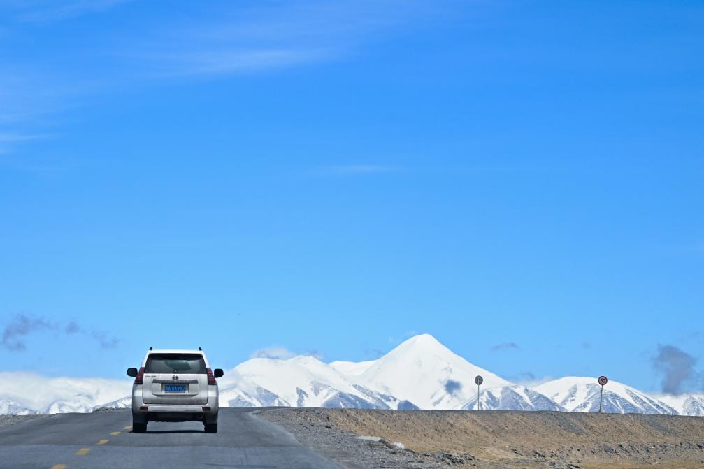 2024年5月27日,一輛車行駛在青藏公路上。新華社記者 張龍 攝