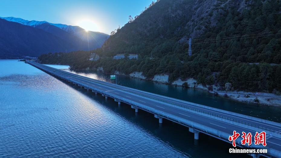 12月16日,航拍拉林高等級(jí)公路多布特大橋路段。連接西藏自治區(qū)首府拉薩和“雪域江南”林芝的拉林高等級(jí)公路在林芝市境內(nèi)的多布特大橋路段被譽(yù)為西藏“最美水上公路”,拉林高等級(jí)公路全長(zhǎng)409.2公里,建在平均海拔3000多米的高原上,是世界上“顏值最高”的高等級(jí)公路之一。