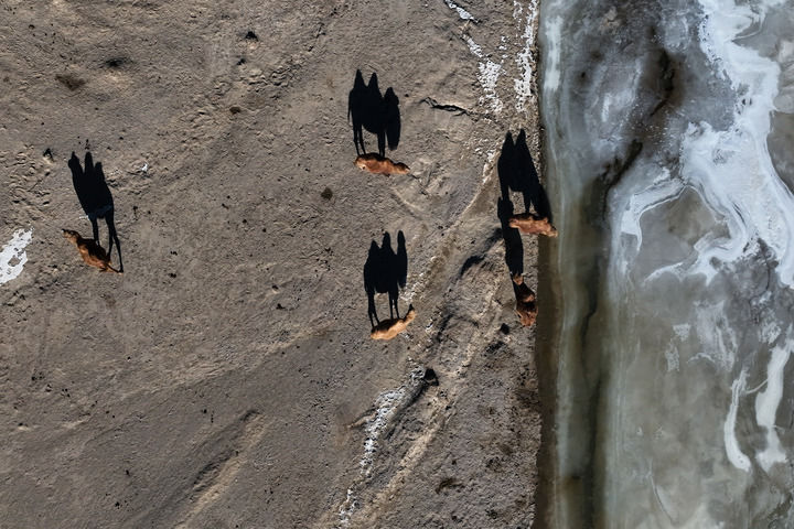 11月27日,在青海省海西蒙古族藏族自治州烏蘭縣,幾只駱駝正在休憩。新華社記者 張龍 攝
