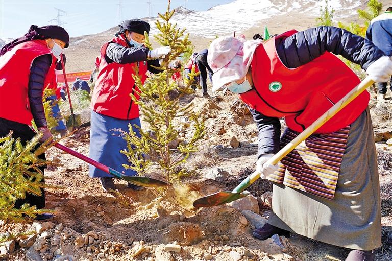 今年3月12日是第47個(gè)植樹(shù)節(jié)。當(dāng)天,西藏各地舉行了植樹(shù)活動(dòng),干部群眾紛紛走進(jìn)綠化區(qū)、綠化點(diǎn)參加義務(wù)植樹(shù)活動(dòng)。活動(dòng)現(xiàn)場(chǎng),大家熱情高漲,分工協(xié)作,配合默契。有的揮鍬鏟土,有的扶苗培土,有的踩實(shí)固根,還有的提桶澆灌,各個(gè)環(huán)節(jié)緊密銜接,現(xiàn)場(chǎng)一片繁忙。