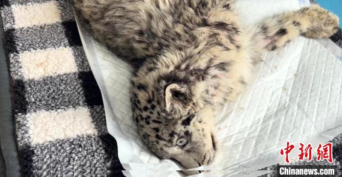 圖為受傷的雪豹幼崽。青海野生動(dòng)物救護(hù)繁育中心供圖