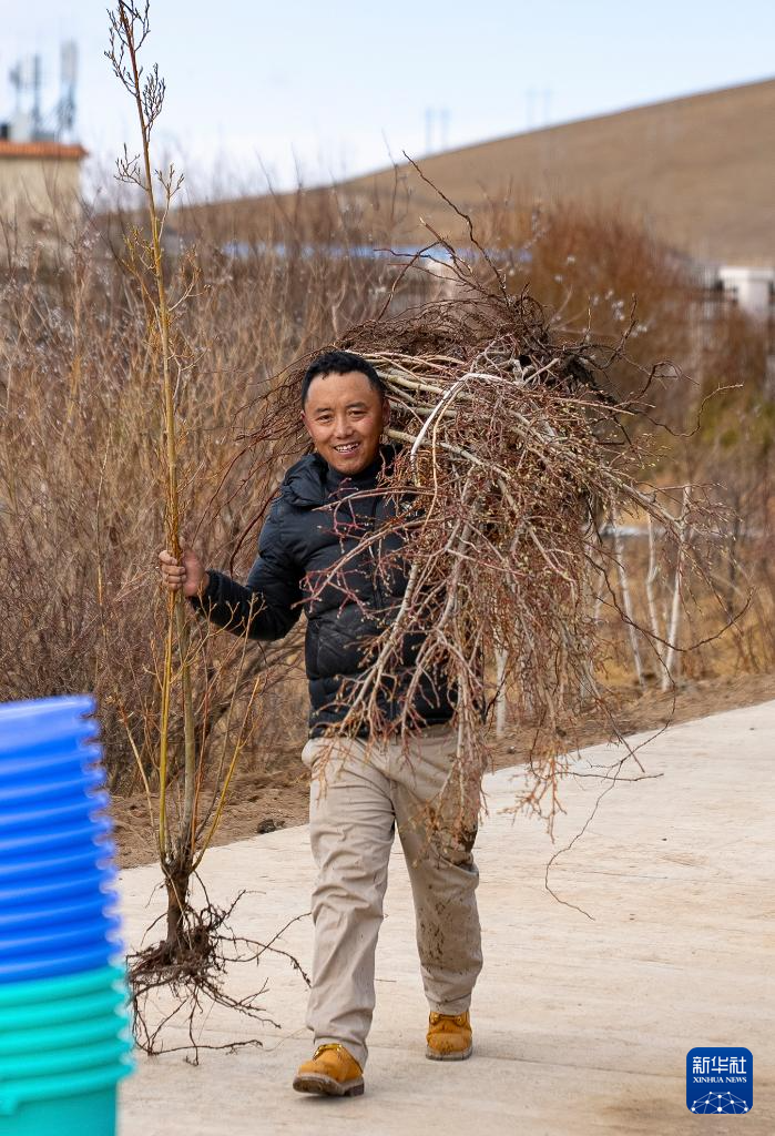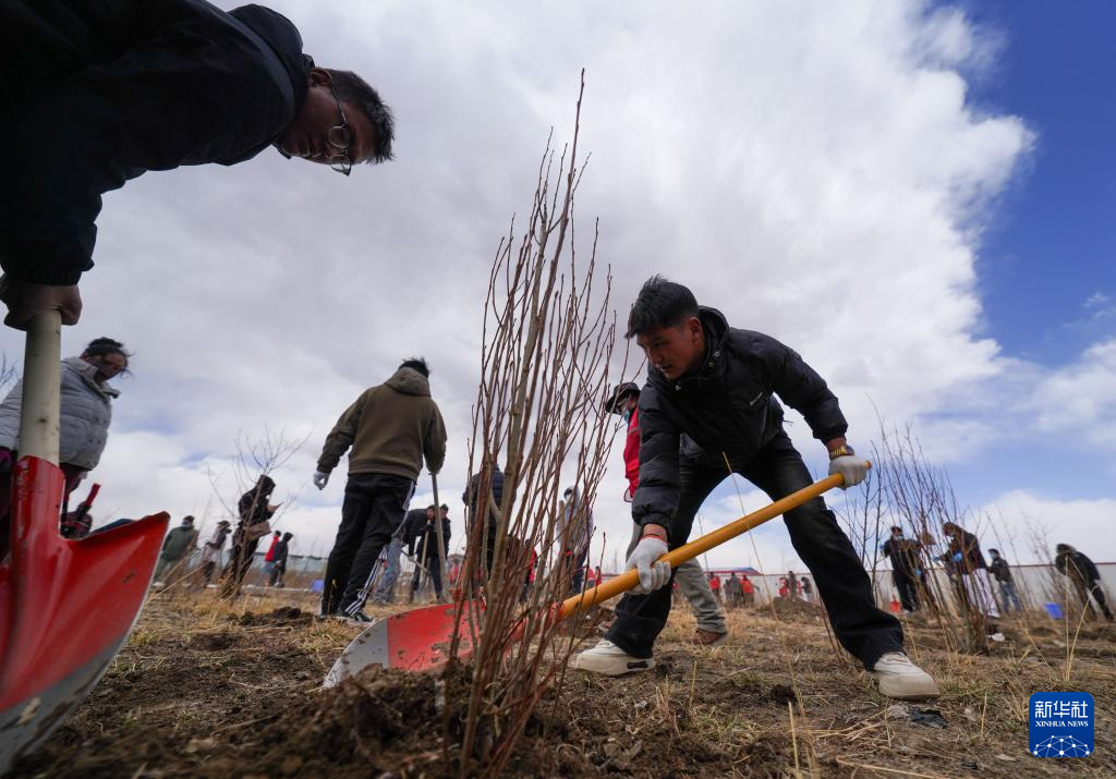 4月25日,西藏那曲市開展義務植樹活動,為這片高海拔地區(qū)再添一抹新綠。