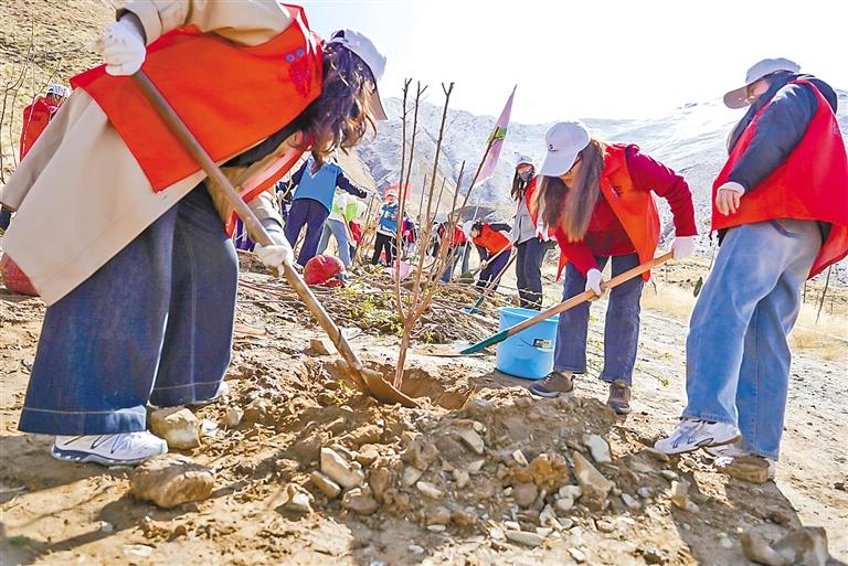 圖為植樹現(xiàn)場。記者 王靜 貢曲羅杰 阿旺尼瑪 桑旦歐珠 攝