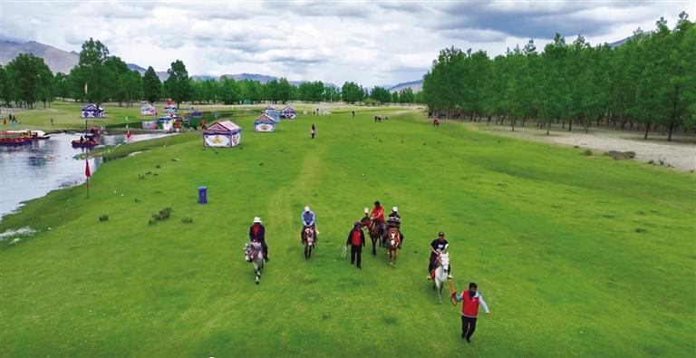 微風(fēng)吹過(guò),神秘樹(shù)林中樹(shù)葉沙沙作響,與歡笑聲、歌聲交織,構(gòu)成了一幅充滿生機(jī)的藏地林卡風(fēng)情畫。在這里,你能體驗(yàn)到遠(yuǎn)離城市喧囂的寧?kù)o,感受來(lái)自森林的溫柔擁抱;也能騎上裝飾著彩綢的白馬,悠然漫步于斑駁樹(shù)影之間,聆聽(tīng)馬蹄輕踏草地的細(xì)碎聲響。樹(shù)林、草坪、河流……讓人仿佛置身于童話般的藏地桃源。