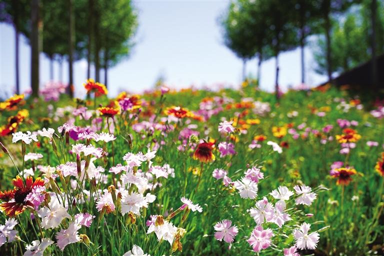 六月的拉薩,陽(yáng)光正好。澄澈藍(lán)天如洗,高遠(yuǎn)而明亮。柳梧大橋下的濱河公園,河畔草地鋪滿(mǎn)各色小花,紅的明艷、粉的柔和、紫的淡雅,肆意綻放在綠意間,仿佛步入印象派大師莫奈的畫(huà)布之中。成片盛開(kāi)的各類(lèi)花卉爭(zhēng)奇斗艷,五彩斑斕的花朵沿著河畔鋪展開(kāi)來(lái),形成一片片絢麗的花海。不同顏色的花朵相互交織,隨風(fēng)搖曳,與藍(lán)天白云、碧綠的河水、遠(yuǎn)處綠意盎然的南山相映成趣,構(gòu)成了一幅花海畫(huà)卷。