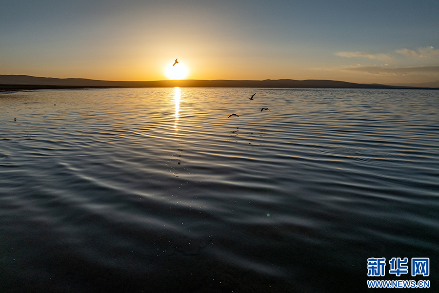 夕陽下的瑪旁雍錯(6月9日攝,無人機(jī)照片)。新華網(wǎng) 旦增努布 攝
