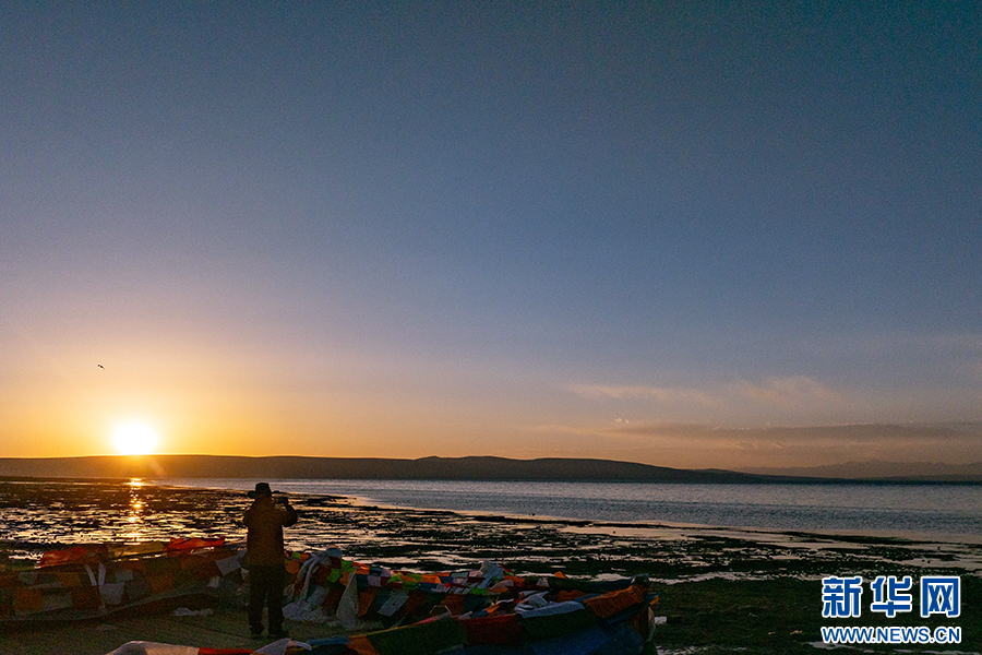 夕陽下,游客在瑪旁雍錯邊游玩。(6月9日攝)。新華網(wǎng) 旦增努布 攝