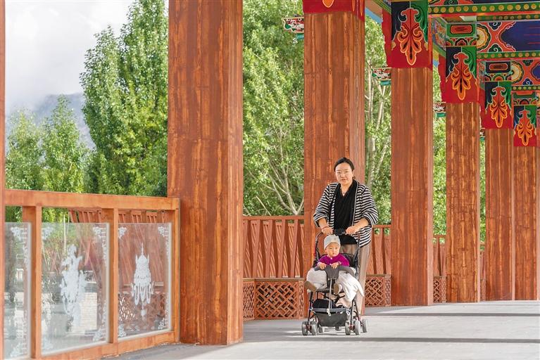 市民在兩島內河綠色生態(tài)廊道提升工程仙足廊橋散步。 新華社記者 旦增尼瑪曲珠 攝