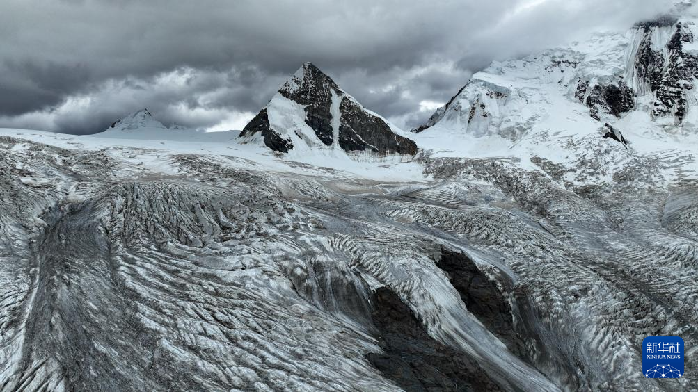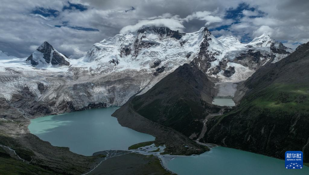 7月19日拍攝的薩普雪山及延伸的冰川(無(wú)人機(jī)照片)。新華社記者 晉美多吉 攝