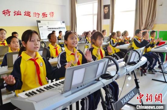 日前,記者走進青海省海東市化隆縣第一小學的音樂課堂時,四年級(4)班的撒拉族學生韓欣瑜正和同班同學們一起演唱《中華是一家》。