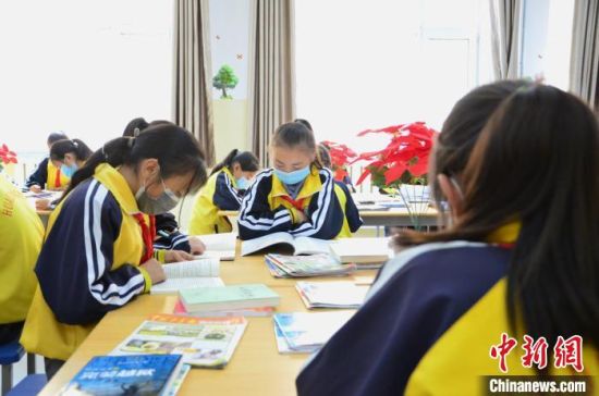 圖為化隆縣第一小學的學生們在閱覽室讀書。 魯?shù)り?攝