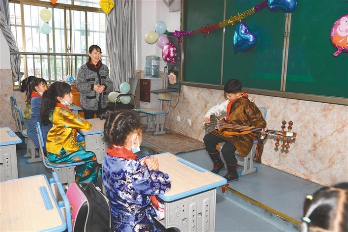 圖為拉薩市北京小學(xué)西校區(qū)的孩子們?cè)谥黝}班會(huì)上展示才藝。記者 唐斌 次旺 攝
