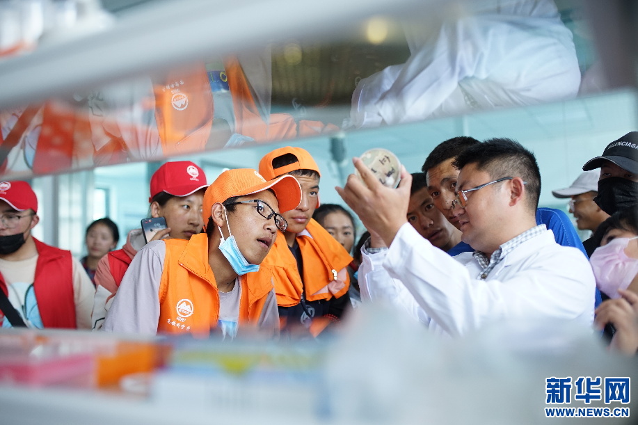 學(xué)生在參觀西藏大學(xué)的生物實(shí)驗(yàn)室(8月12日攝)。新華社發(fā) (武建偉 攝)