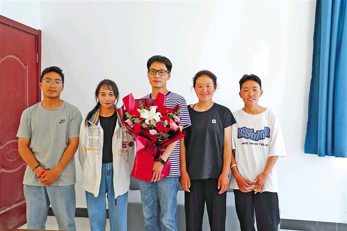 圖為西藏民族大學(xué)的學(xué)生為老師送上鮮花,表達(dá)祝福和謝意。記者 王莉 攝