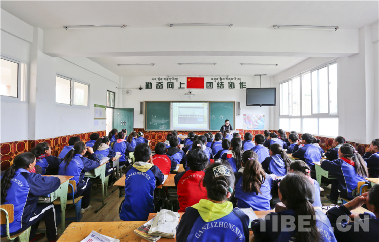 圖為甘孜縣民族中學(xué)多媒體教學(xué)