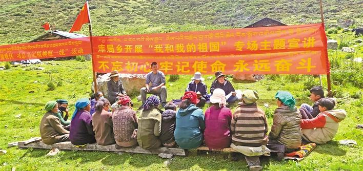 圖為庫(kù)局鄉(xiāng)黨委組織干部職工下沉邊境一線對(duì)農(nóng)牧民黨員開展宣講教育。西藏日?qǐng)?bào)通訊員 李蒙 攝
